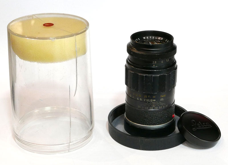 Optique vendue en l'état, présentant des traces d'utilisation mais fonctionnant correctement. Vendue avec son bouchon avant métal, sa cloche plastique et sa boite d'origine. Etat 7/10. Référence Leica 11129. Garantie 1 mois. Ref 46578